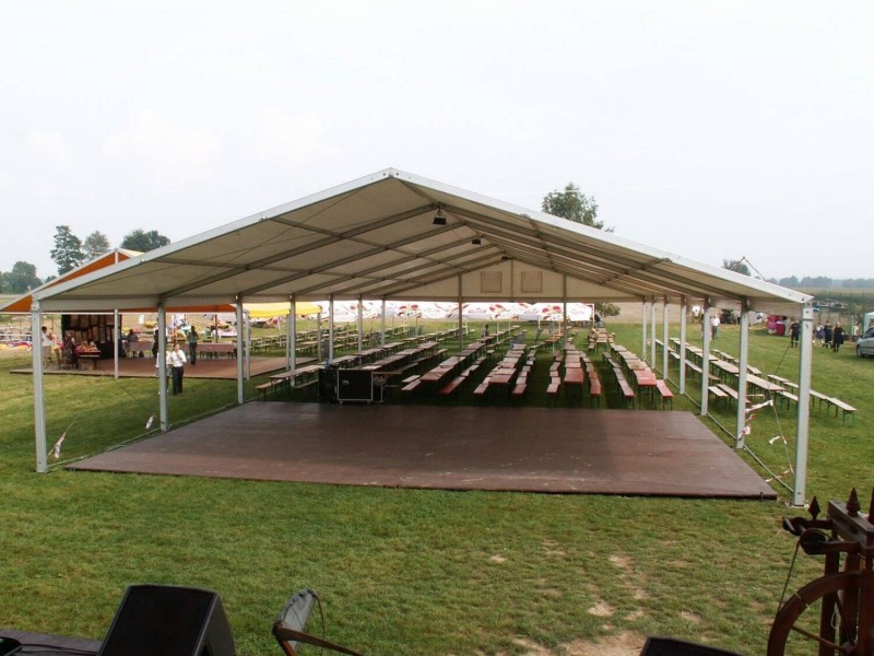 Hala namiotowa:Szerokość - 15m Długość - do uzgodnienia. Możliwość rozbudowy o kolejne pola w zależności od wymagań, potrzeb i możliwości. Posiadamy dodatkowe wyposażenie jak: